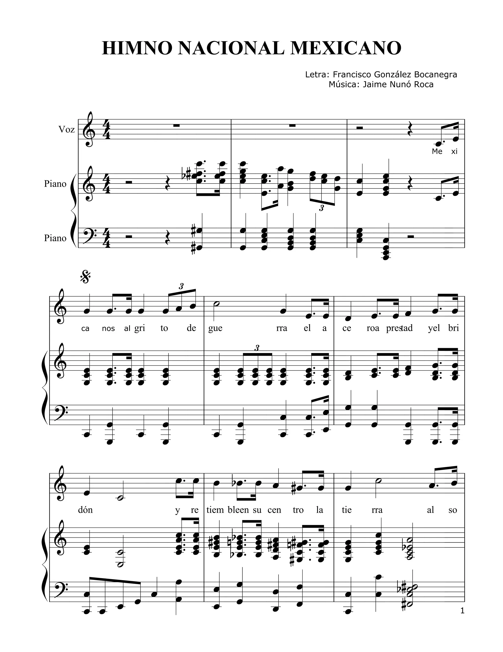 Le document contient les paroles de l'hymne national mexicain, écrit par Francisco González Bocanegra et composé par Jaime Nunó. Les paroles évoquent des thèmes de patriotisme et de fierté nationale. L'hymne est un symbole important de l'identité mexicaine.