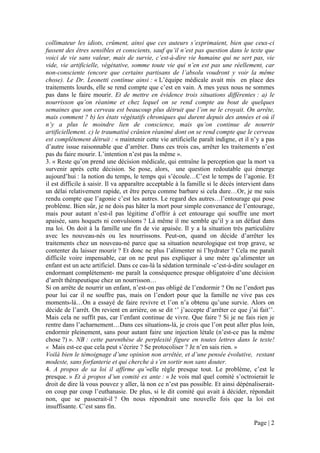 Le document explore la question complexe de l'euthanasie et des soins palliatifs, en abordant les réflexions du Dr. Jean Leonetti sur la fin de vie et la perception de l'agonie. Il met en lumière les enjeux éthiques liés à l'arrêt des traitements, les perceptions des familles, et la nécessité d'offrir une fin de vie apaisée. Enfin, il suggère une coopération entre les partisans de la palliation et de l'euthanasie pour lutter contre le mal-être terminal.