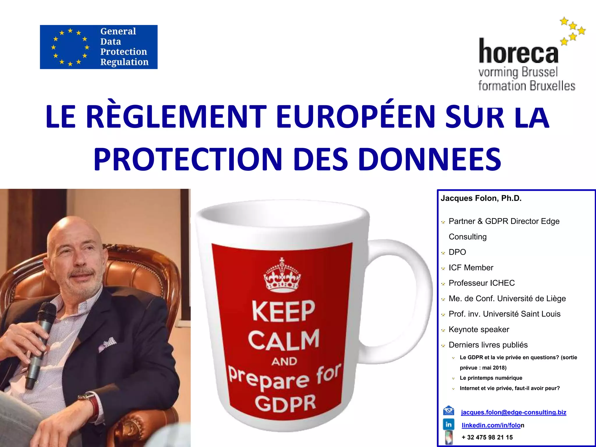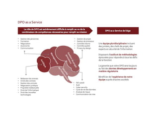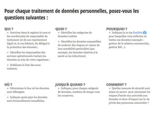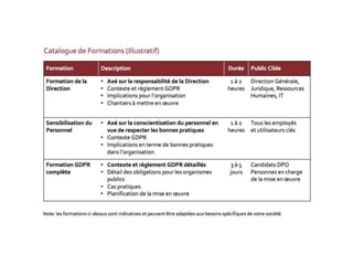 Le document traite du Règlement européen sur la protection des données (GDPR), soulignant ses principes et exigences pour les entreprises et le secteur public. Il aborde les responsabilités en matière de traitement des données, les droits des personnes concernées, ainsi que les obligations des sous-traitants. En conclusion, il met l'accent sur la nécessité d'une conformité à ce règlement complexe pour protéger les données personnelles.