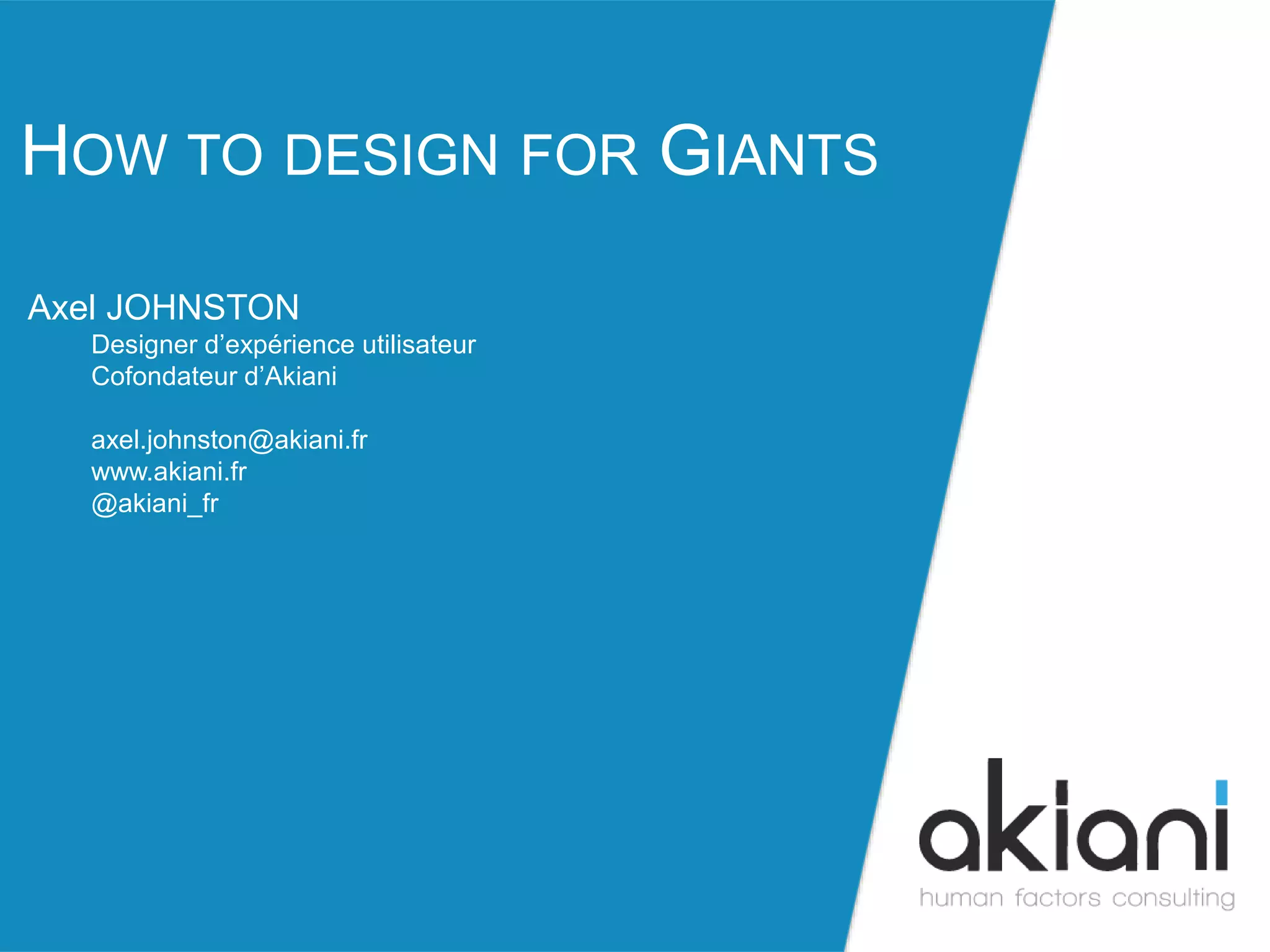 Le document présente cinq conseils clés pour optimiser la conception d'interfaces utilisateur : segmenter la cible, soigner l'interface, proposer des niveaux d'expertise, rester dans des usages connus et utiliser des tests A/B pour objectiver le design. Il met également en avant l'importance de la première impression des utilisateurs et l'impact significatif des tests sur les taux de conversion. Ces recommandations s'appuient sur des études et des pratiques de l'industrie du design UX.