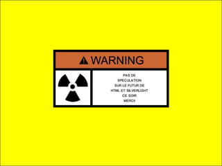 Le document présente une comparaison entre Silverlight et HTML5 pour le développement d'applications web. Il aborde l'évolution et les fonctionnalités de Silverlight et HTML5, ainsi que les outils et langages associés. Les performances et les capacités des deux technologies sont également discutées, avec des recommandations pour approfondir le sujet.