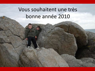 Hugo, Mathis, Flo et Arnaud Louarn souhaitent une bonne année 2010 pleine d'insouciance, de rêves et d'aventures. Ils évoquent des thèmes comme l'amitié, la tendresse et les voyages. Le message met l'accent sur une année joyeuse et imaginative.
