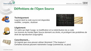 Le document aborde l'importance de l'open source dans l'univers de l'IT, en mettant en avant les avantages des systèmes Power8 d'IBM en termes de performance et de virtualisation pour les environnements Linux. Il présente également des données spécifiques sur la performance de Power8 par rapport aux architectures x86. Enfin, il souligne les économies réalisées et l'efficacité de l'open source dans le développement des solutions informatiques modernes.