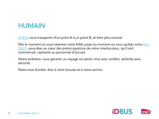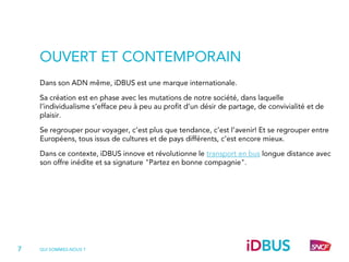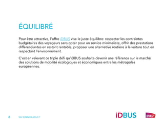 iDBUS redéfinit les codes du voyage en bus longue distance. Pour créer une offre réellement inédite, en parfaite adéquation avec les attentes des voyageurs européens, nous avons travaillé à partir d’enquêtes approfondies auprès de nos futurs clients.