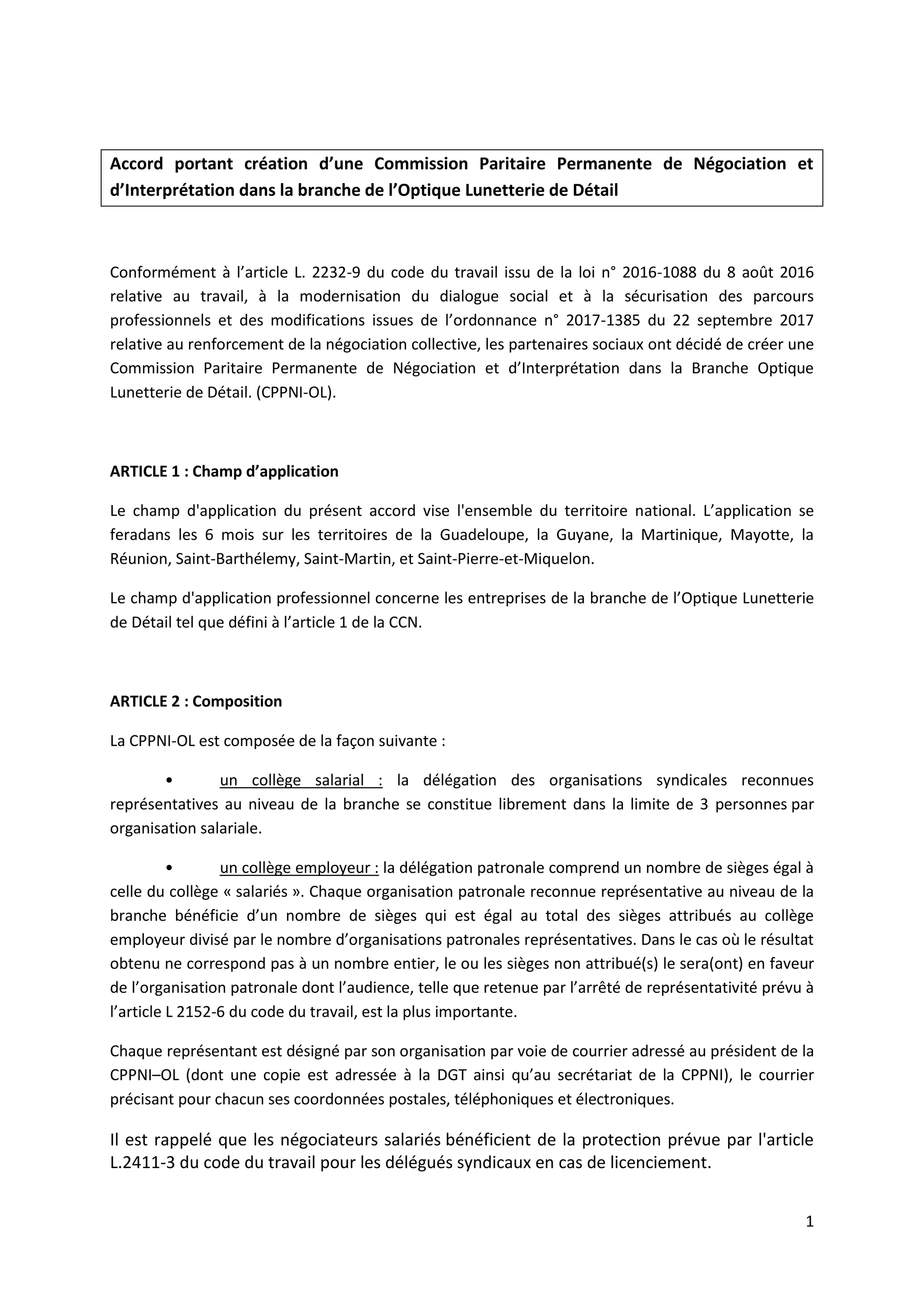 Un accord a été signé pour créer une commission paritaire permanente de négociation dans le secteur de l'optique lunetterie de détail, avec pour missions principales de représenter la branche, négocier des modifications de la convention collective et suivre les conditions de travail. La commission sera composée de représentants des salariés et des employeurs, avec des procédures établies pour les réunions et les décisions. Cet accord, entré en vigueur le 5 avril 2018, remplace précédemment les dispositions relatives à la conciliation et à l'interprétation au sein de cette branche.