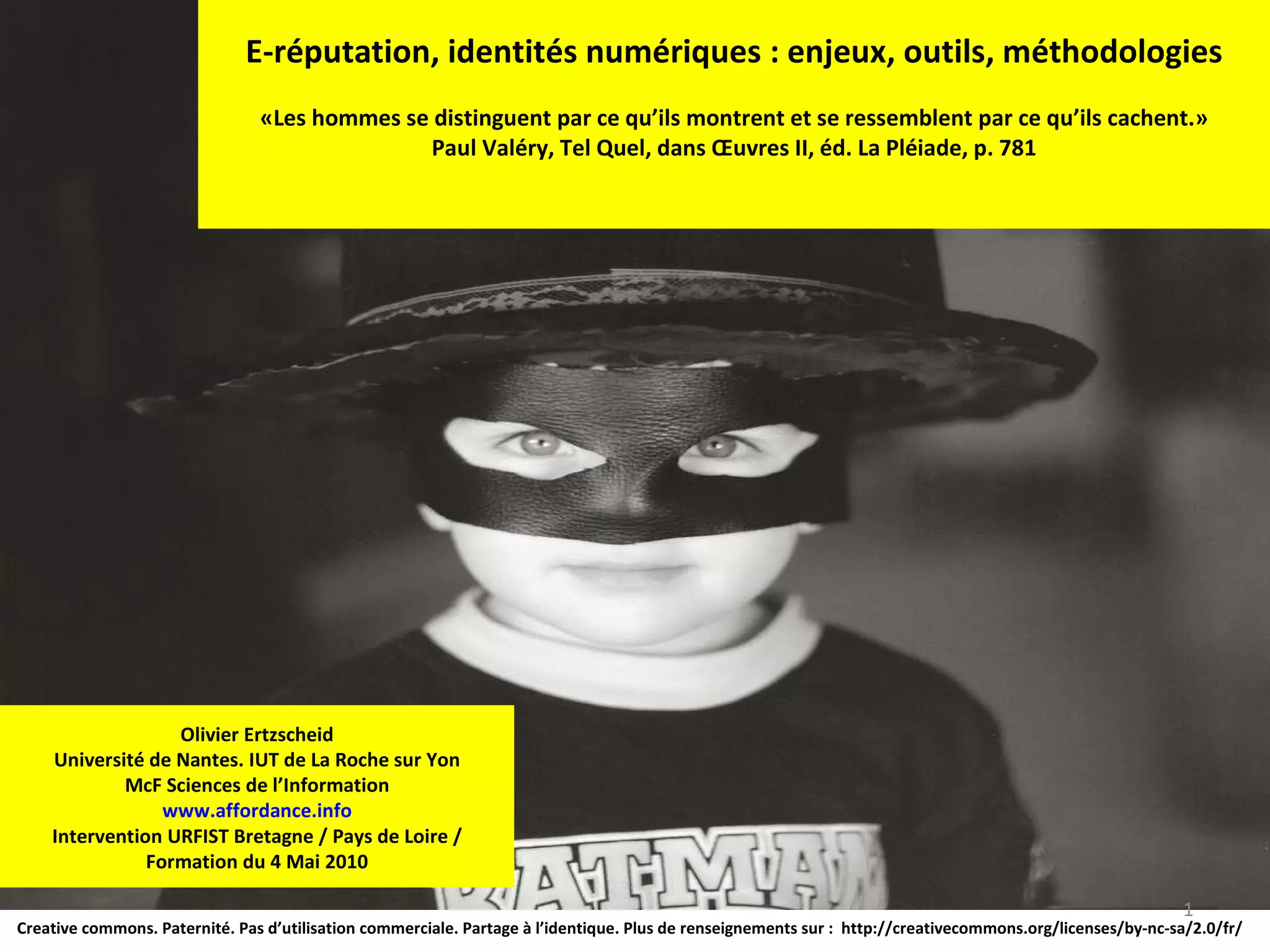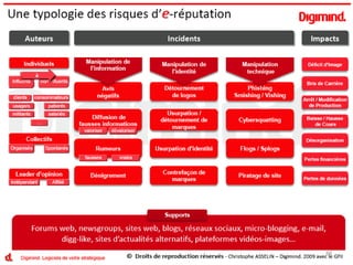 Le document explore les enjeux de l'e-réputation et de l'identité numérique, en mettant l'accent sur les méthodologies pour gérer ces identités sur le web. Il aborde la définition des identités numériques, les défis de la traçabilité et de la réputation, ainsi que les outils nécessaires pour surveiller et comprendre sa présence en ligne. L'auteur souligne l'importance croissante de l'identité numérique dans un monde connecté et les risques associés à une visibilité accrue sur internet.