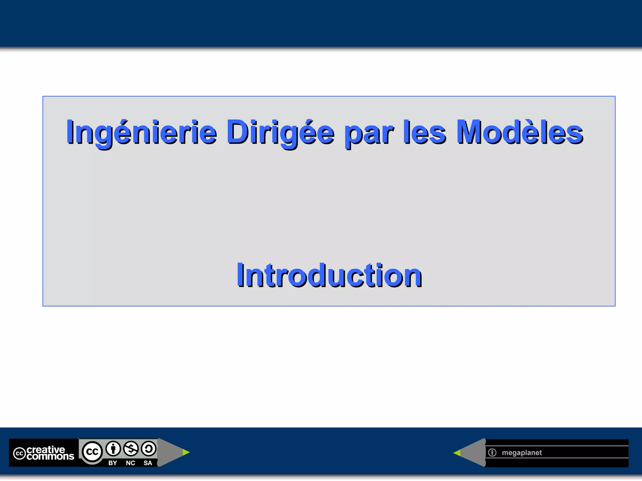 Le document traite de l'ingénierie dirigée par les modèles, en soulignant la complexité croissante de l'industrie logicielle et la nécessité de séparer les préoccupations entre différents acteurs et métiers. Il aborde les défis liés à diverses plateformes, à l'internationalisation et à la standardisation, tout en posant des questions sur le rôle et l'efficacité des modèles dans le développement logiciel. Enfin, il évoque les relations entre modèles, langages de modélisation et code, ainsi que les enjeux de la gestion de la complexité.