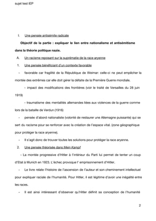 Le document explore l'évolution de l'antisémitisme nazi entre 1933 et 1945, en décrivant comment une pensée antisémite radicale a conduit à l'exclusion et à l'extermination de la population juive. Il aborde les contextes politiques, économiques et sociaux qui ont favorisé la montée du nazisme, ainsi que l'organisation et les méthodes de mise en œuvre de la solution finale. La conclusion souligne la complexité des processus ayant abouti à l'une des périodes les plus sombres de l'histoire.