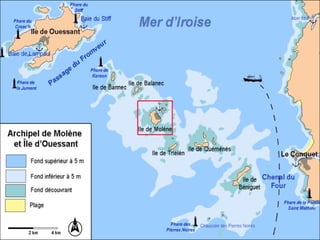Le document décrit les paysages côtiers et les ports de Bretagne, en mettant l'accent sur les plages et les phares emblématiques. Il inclut des éléments tels que la citadelle, les aiguilles du port et la biodiversité locale, comme les brebis de race Ouessant. La synthèse est accompagnée de photos et d'une musique évoquant l'atmosphère maritime de la région.