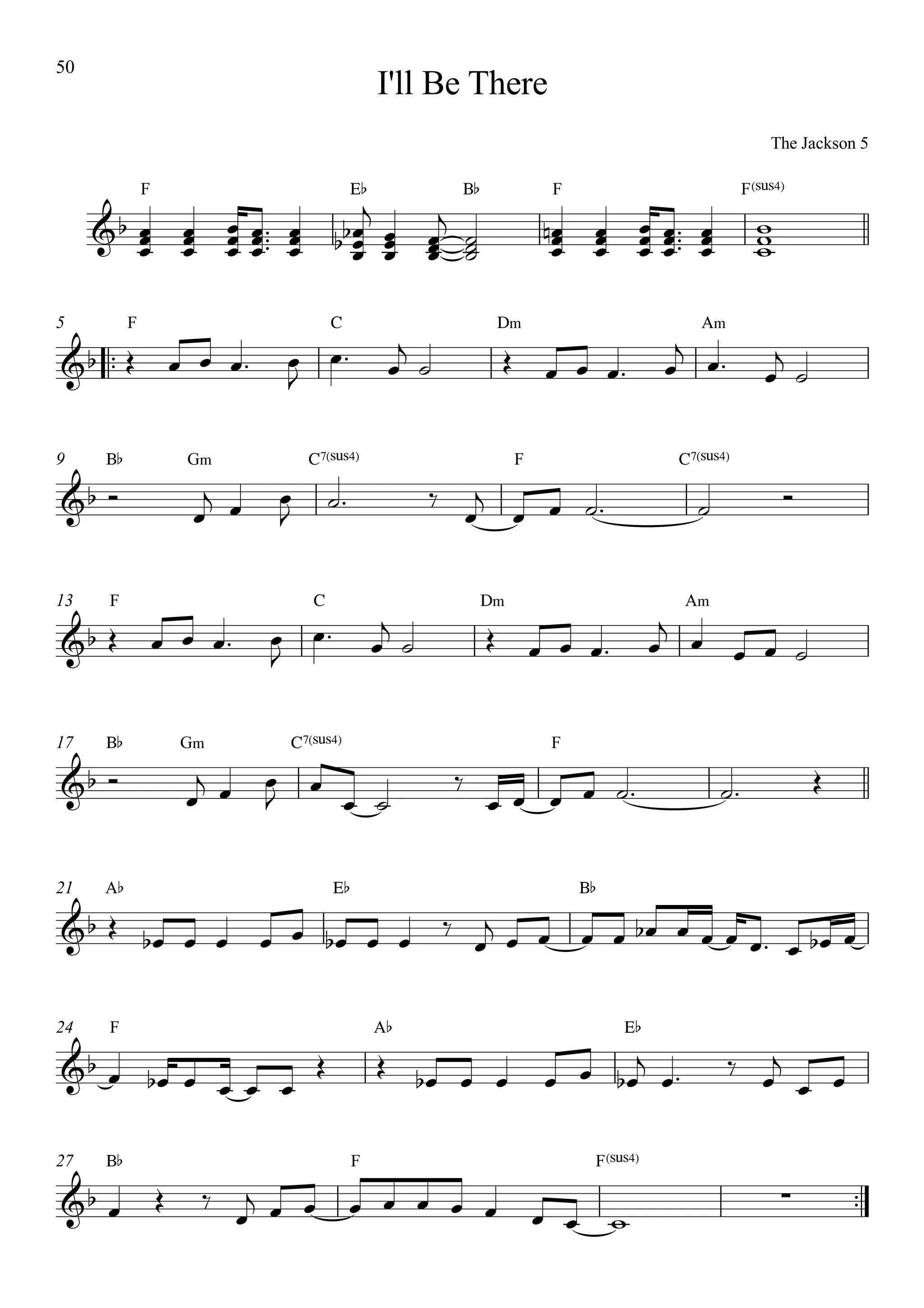 Le document semble être une partition musicale ou une notation pour une chanson, probablement 'I'll Be There' des Jackson 5. Il contient des symboles et des notations qui décrivent la musique et le rythme. Aucun texte descriptif n'est présent en dehors des éléments musicaux.