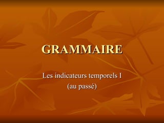 Le document traite des indicateurs temporels utilisés au passé pour situer une action dans le temps, en se basant sur des adverbes et des locutions adverbiales. Il présente des exemples comme 'avant', 'hier' et 'autrefois', ainsi que des équivalents pour des repères temporels différents. Ces éléments aident à préciser la temporalité d'un événement par rapport au moment de la parole.