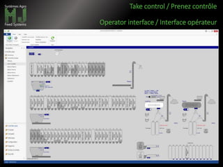 Le document traite de diverses fonctionnalités et contrôles offerts par une interface opérateur. Il couvre la gestion des commandes, des paramètres de process, des produits, des rapports personnalisés, ainsi que des diagnostics système. Les modifications système peuvent également être effectuées à l'aide de Wish Studio.