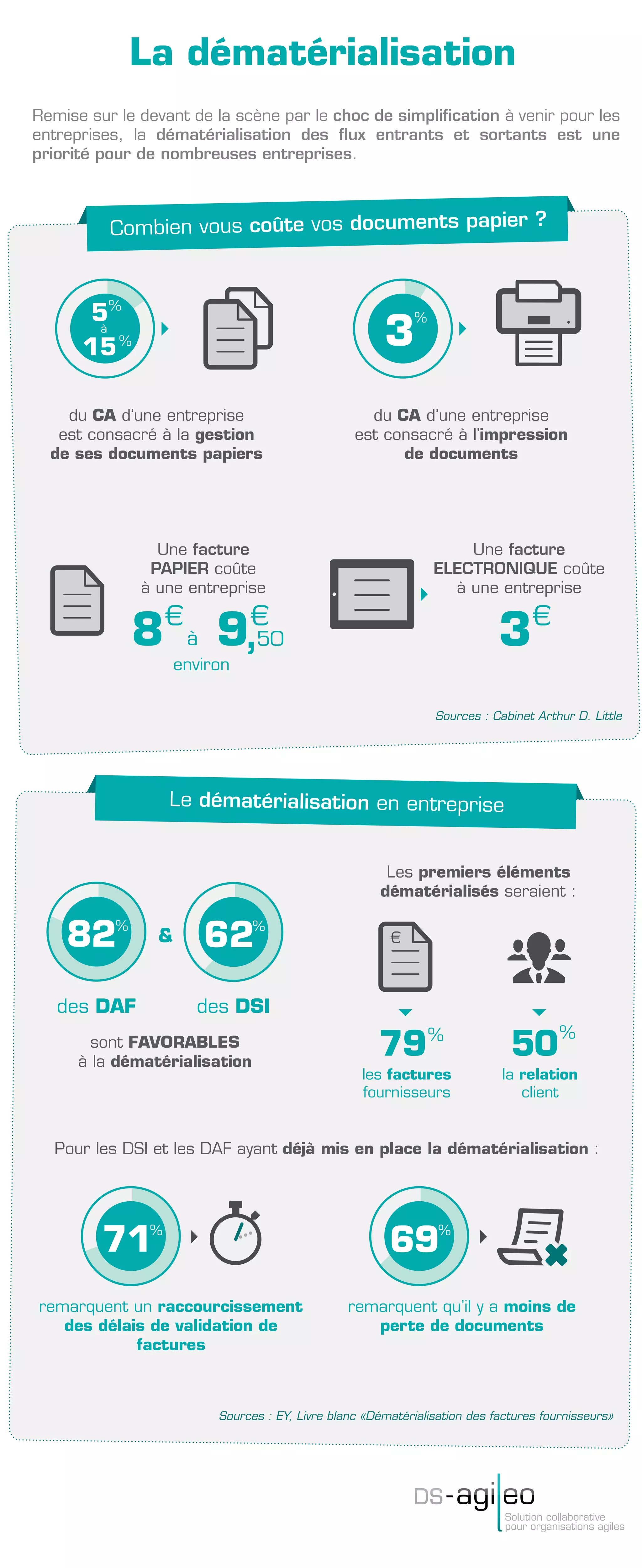 La dématérialisation des documents dans les entreprises est de plus en plus favorisée, entraînant des réductions de délais de validation et une diminution des pertes de documents. Les entreprises constatent que les coûts liés aux factures papier sont plus élevés que ceux des factures électroniques, ce qui renforce l'intérêt pour cette transition. Cette évolution est nécessaire pour optimiser la gestion documentaire et améliorer la relation client.