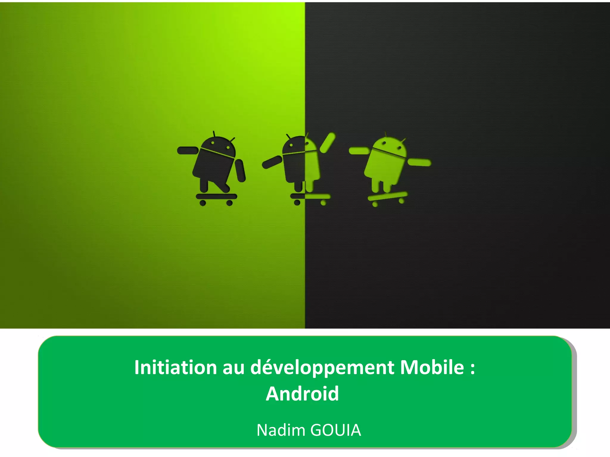 Ce document présente une introduction au développement mobile sur Android, incluant les pré-requis en Java et les bases de la création d'applications. Il décrit l'architecture IDE, les étapes de création d'une application 'Hello World' ainsi que les composants graphiques et les layouts utilisés. Des recommandations concernant l'utilisation d'émulateurs et des références supplémentaires sont également fournies.