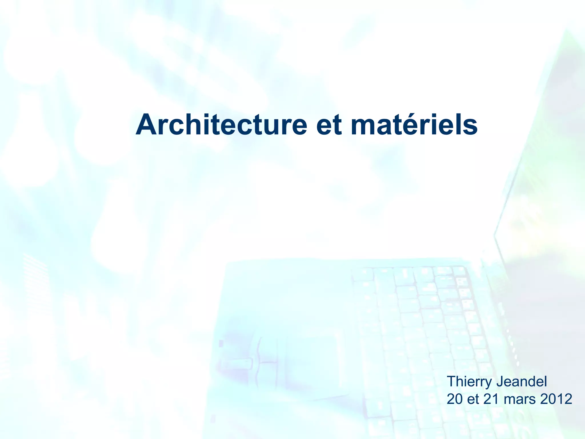 Le document retrace l'évolution de l'informatique de 1945 à 2012, en détaillant les grandes étapes et innovations telles que les ordinateurs, les microprocesseurs et les réseaux numériques. Il aborde également les composants matériels des ordinateurs, ainsi que les périphériques associés comme les imprimantes et les scanners. Enfin, il présente les différents types de mémoire et la connectique indispensable au fonctionnement des systèmes informatiques.