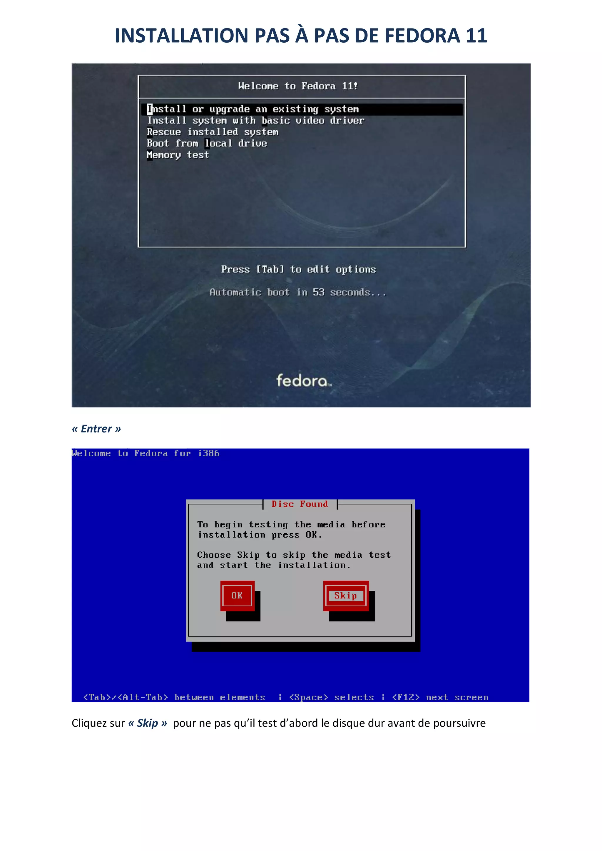 Le document fournit des instructions détaillées pour l'installation de Fedora 11, incluant le choix de la langue, la configuration du disque dur, et le partitionnement. Il décrit étape par étape la création de partitions pour le système, les utilisateurs, et le stockage, ainsi que la configuration post-installation. À la fin, le système est prêt à être utilisé après la création d'un compte utilisateur.