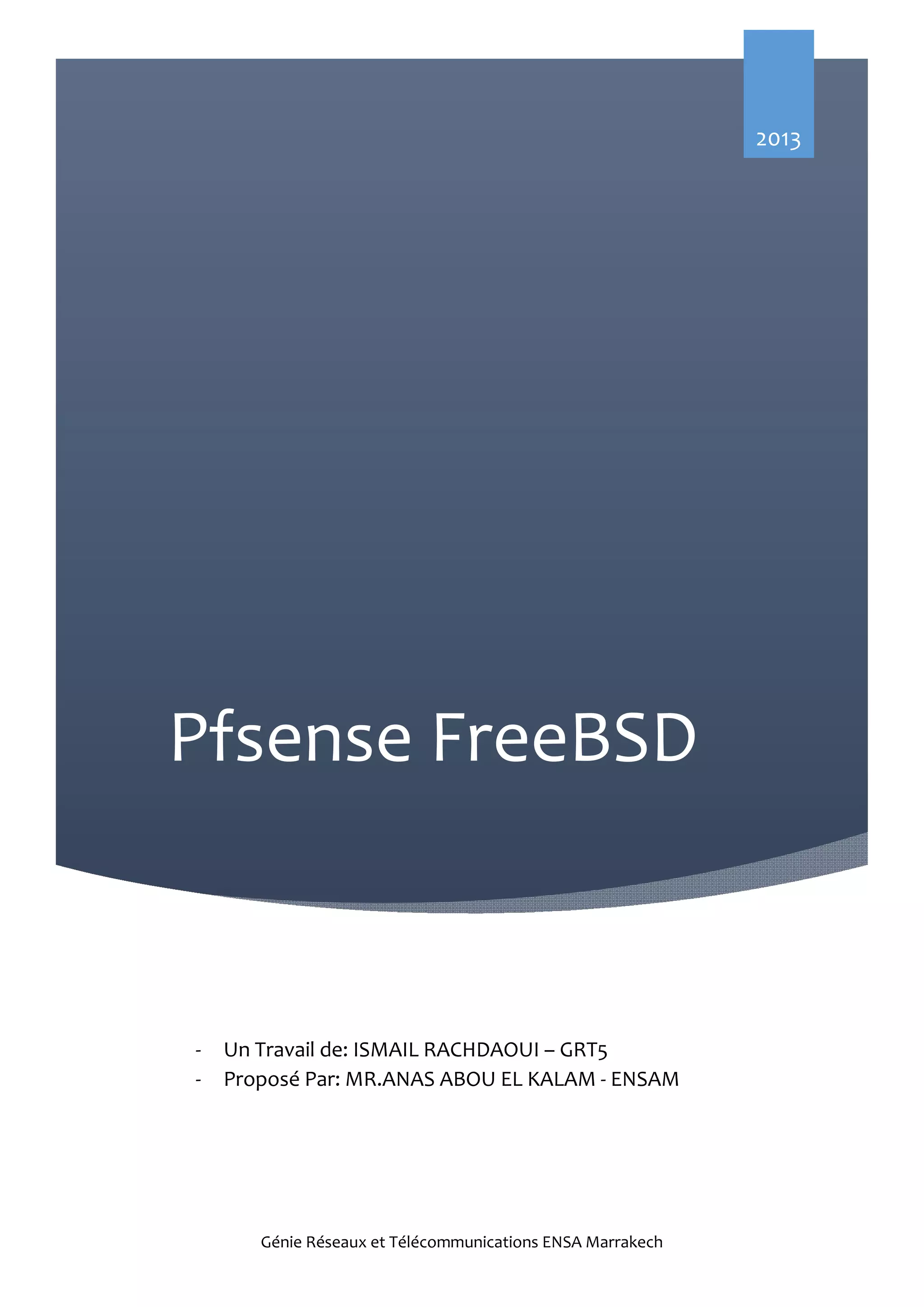 Le document présente une introduction à pfSense, un routeur et pare-feu open source basé sur FreeBSD, en précisant son installation, sa configuration et ses fonctionnalités avancées telles que l'OpenVPN et le portail captif. Il explique également les meilleures pratiques pour la gestion des règles de pare-feu et offre des instructions détaillées sur la configuration de ces fonctionnalités. Enfin, il met en avant les avantages de pfSense, notamment sa fiabilité et sa capacité à remplacer des pare-feu commerciaux coûteux.