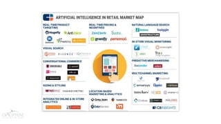 Le document aborde l'impact de l'intelligence artificielle (IA) sur l'e-commerce, en soulignant un changement de perception depuis 2005. Il décrit les différentes catégories d'IA et leurs applications, telles que le machine learning dans la personnalisation et l'optimisation des opérations. Enfin, il compare la business intelligence et le big data, mettant en avant les objectifs et types d'analyse associés à chacun.
