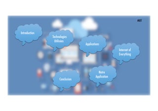L'Internet des objets (IoT) est l'extension d'Internet aux objets du monde physique, marquant l'évolution vers le Web 3.0. Ce document explore les technologies, les tendances et les applications de l'IoT, en soulignant son impact sur divers secteurs comme la santé et la gestion urbaine. L'IoT a le potentiel de transformer notre quotidien, générant d'importantes quantités de données et révolutionnant des domaines tels que la communication machine à machine (M2M).