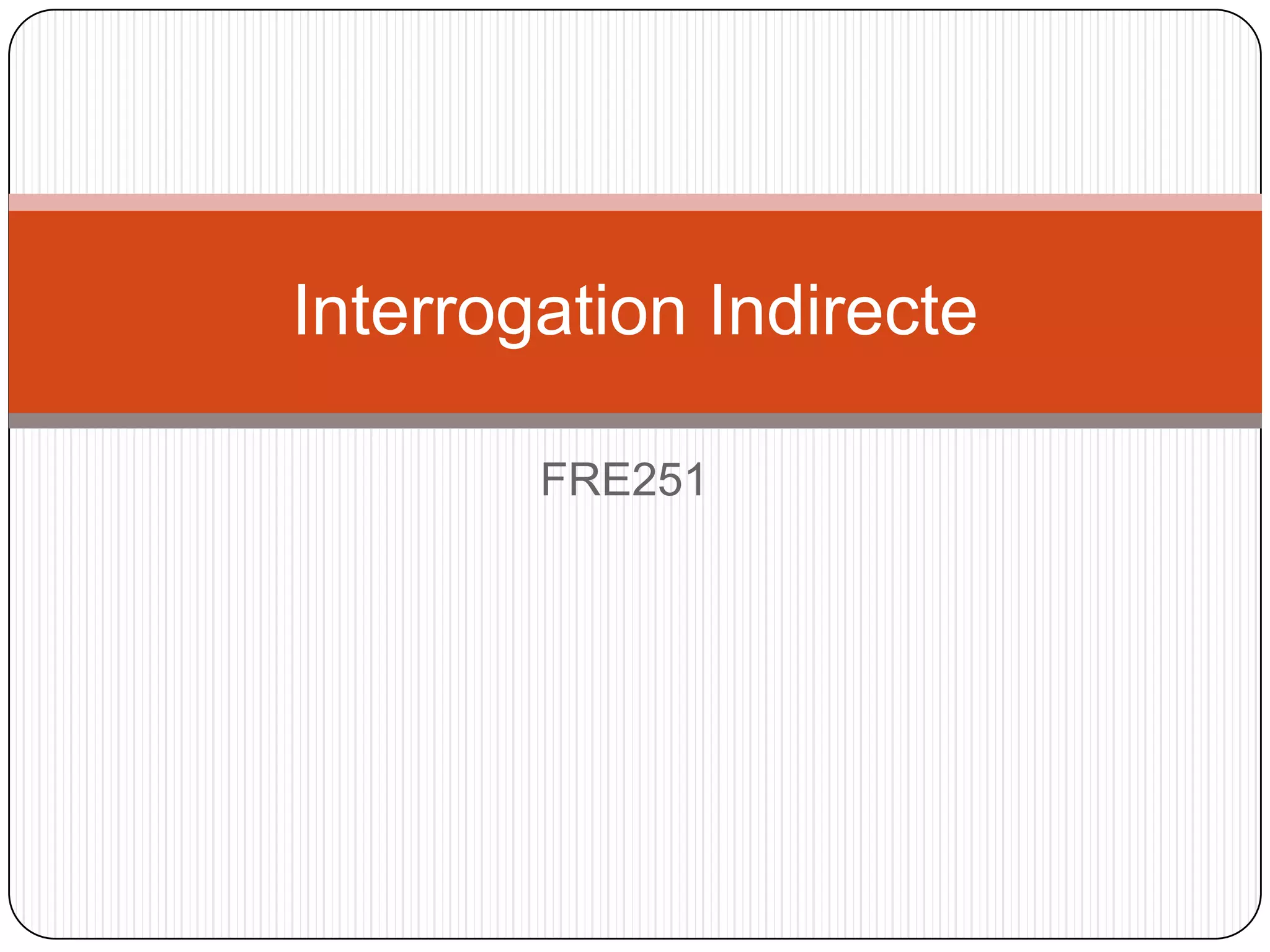 Le document explique la structure de l'interrogation indirecte en français, avec des exemples de transformation d'interrogations directes en indirectes. Il détaille également l'ordre des mots dans ces types de phrases, en précisant les cas particuliers selon le sujet et les verbes employés. Enfin, il mentionne les différences entre les interrogations totales et partielles ainsi que des exemples pratiques.