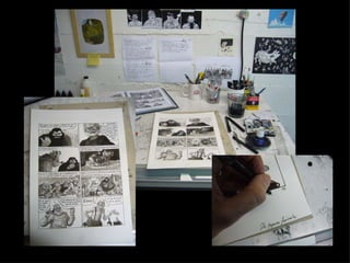 Le document présente les parcours de deux dessinateurs, Hervé Tanquerelle et Éric Sagot, et fait un survol historique de la bande dessinée francophone, depuis ses débuts avec des artistes comme Gustave Doré jusqu'aux périodes plus récentes, en incluant des œuvres emblématiques. Il explore également le processus de création d'une bande dessinée, détaillant les étapes de conception, de la recherche au matériau nécessaire, ainsi que les aspects de promotion. Les contributions d'autres scénaristes comme Fabien Vehlmann et David B. sont aussi mentionnées, ainsi que divers styles et influences au fil des décennies.