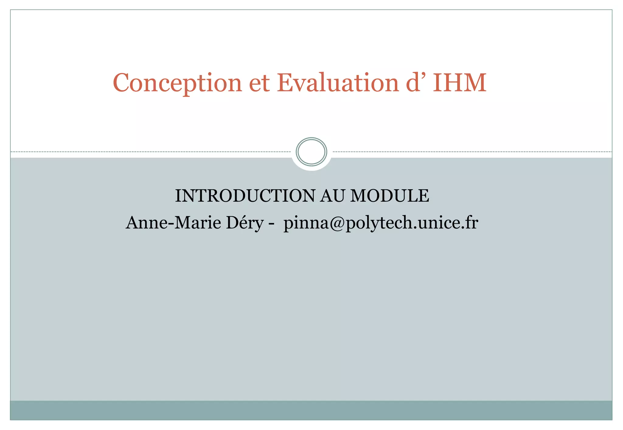 Le document traite de la conception et de l'évaluation des interfaces homme-machine (IHM), en soulignant l'importance de la diversité des supports et des techniques d'interaction adaptées aux utilisateurs variés. Il aborde également les enjeux actuels tels que la continuité de service, la mobilité, et la complexification des besoins utilisateurs, tout en proposant des méthodes et étapes pour une meilleure conception et évaluation des systèmes interactifs. Enfin, il souligne le rôle croissant de nouveaux métiers liés à l'interaction et à la conception ergonomique dans un contexte technologique en constante évolution.