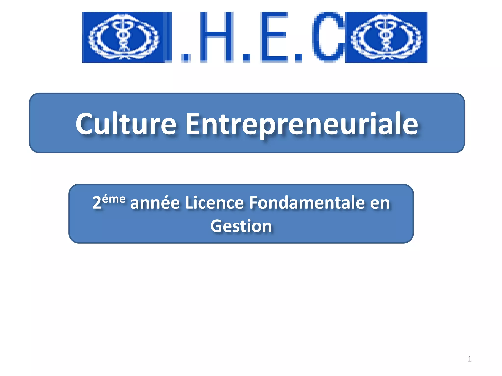 Le document traite de la culture entrepreneuriale dans le cadre d'une licence en gestion, abordant ses enjeux et formes ainsi que l'importance de la créativité et du profil de l'entrepreneur. Il souligne l'engagement de l'État tunisien à stimuler l'entrepreneuriat par le biais de politiques économiques et d'un environnement institutionnel favorable. Enfin, il met en avant la nécessité de cultiver une culture entrepreneuriale pour soutenir la création d'entreprises, générer des emplois et lutter contre le chômage.
