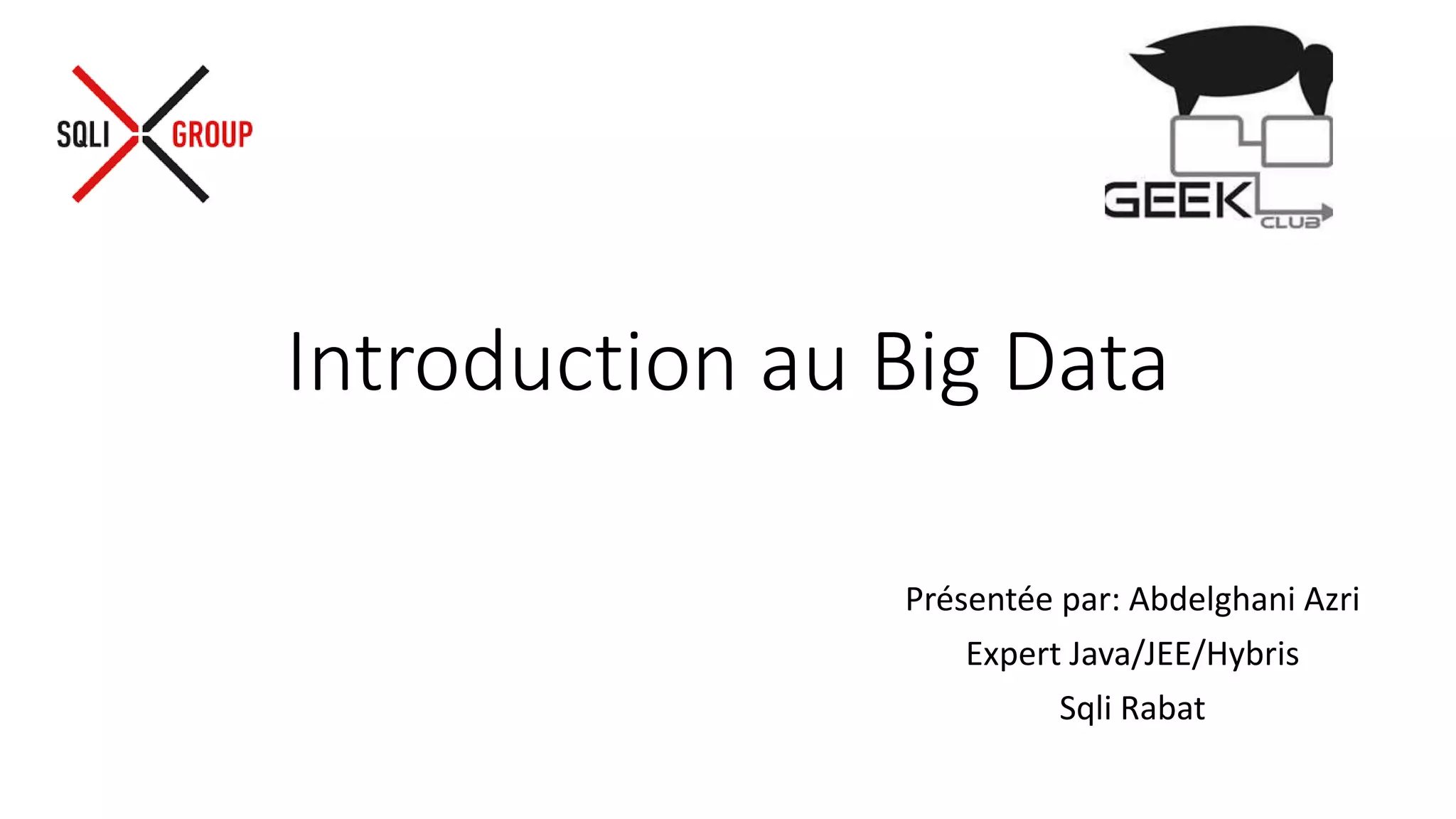 Le document présente une introduction au big data, définissant ses caractéristiques principales—volume, vélocité et variété—et soulignant les limitations des bases de données relationnelles traditionnelles. Il aborde également les bases de données NoSQL comme une solution pour exploiter les données massives, en détaillant différents types de modèles de données. Enfin, le document discute de l'open data et de son rôle dans la transparence gouvernementale et l'analyse des données.