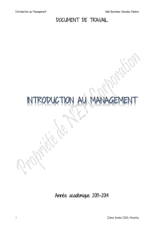 Le document traite de l'importance du management et des organisations, en soulignant leur interconnexion et les impacts de la qualité du management sur la performance organisationnelle. Il explore les notions fondamentales d'organisation et de management, leur historique, ainsi que les rôles des managers à travers des théories clés. Enfin, il aborde les classifications des entreprises et différentes approches du management et de l'entreprise.