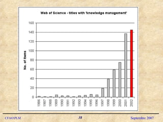 Le document traite de l'évolution et de l'importance de la gestion du cycle de vie des produits (PLM) dans le contexte industriel actuel, en se concentrant sur la réduction des coûts, l'amélioration de la qualité et le respect des délais de mise sur le marché. Il souligne également l'importance de la gestion des connaissances pour capitaliser les informations et garantir une collaboration efficace entre les différentes parties prenantes du développement produit. Enfin, des exemples d'industries mettent en lumière des pratiques concrètes de gestion des connaissances pour optimiser les processus de conception et de production.