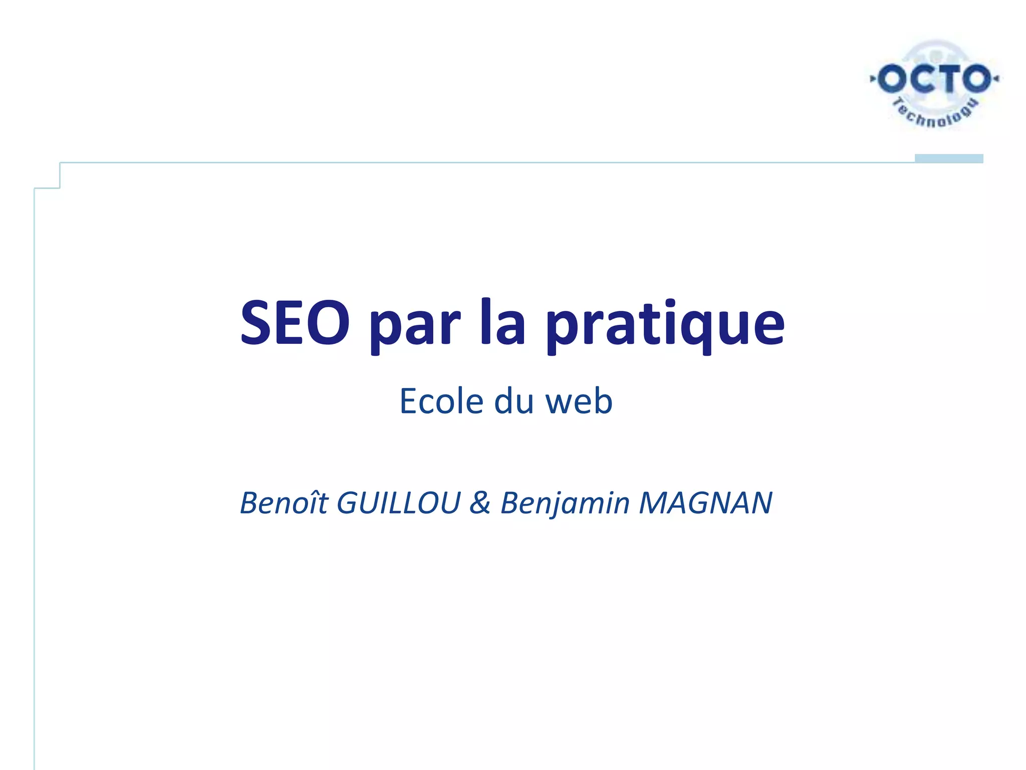 Le document traite des stratégies de référencement SEO, en expliquant son fonctionnement, son importance pour la visibilité en ligne et les étapes pour optimiser un site. Il aborde la nécessité d'une bonne optimisation du contenu, de la structure du site, et de l'utilisation des réseaux sociaux pour améliorer la réputation. Des outils et des indicateurs de performance sont également mentionnés pour suivre l'efficacité des campagnes de référencement.