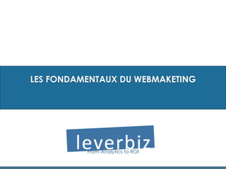 Le document présente les fondamentaux du webmarketing, en abordant des concepts clés tels que le ROI, les différents canaux (SEO, display, SEM, affiliation, etc.) et leur complexité. Il décrit également les leviers et les acteurs principaux, ainsi que l'importance du suivi et de l'optimisation des campagnes pour maximiser les résultats. Enfin, il souligne la nécessité d'adapter les stratégies selon les objectifs de l'entreprise tout en évitant les écueils classiques.
