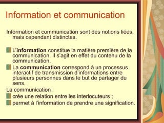 La communication interpersonnelle est un processus complexe qui implique non seulement la transmission d'informations mais aussi la création de relations entre individus à travers des interactions verbales et non verbales. Elle se décline en trois types principaux : interpersonnelle, de groupe et de masse, et comprend des éléments clés tels que l'émetteur, le message, et le récepteur. Les enjeux de la communication incluent la transmission d'un message, l'établissement de relations et l'influence sur autrui.