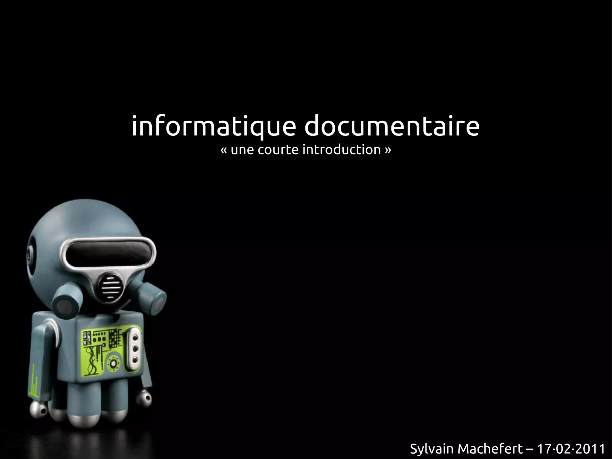 Ce document propose une introduction à l'informatique documentaire, en définissant les documents numériques et en abordant les enjeux d'interopérabilité, d'accessibilité et de pérennité. Il présente divers outils, formats de fichiers et systèmes de codage des caractères, ainsi que des identifiants et des métadonnées nécessaires pour identifier et structurer les documents en ligne. Enfin, il discute des protocoles d'échange de données et de l'importance de l'intégration dans les systèmes d'information.