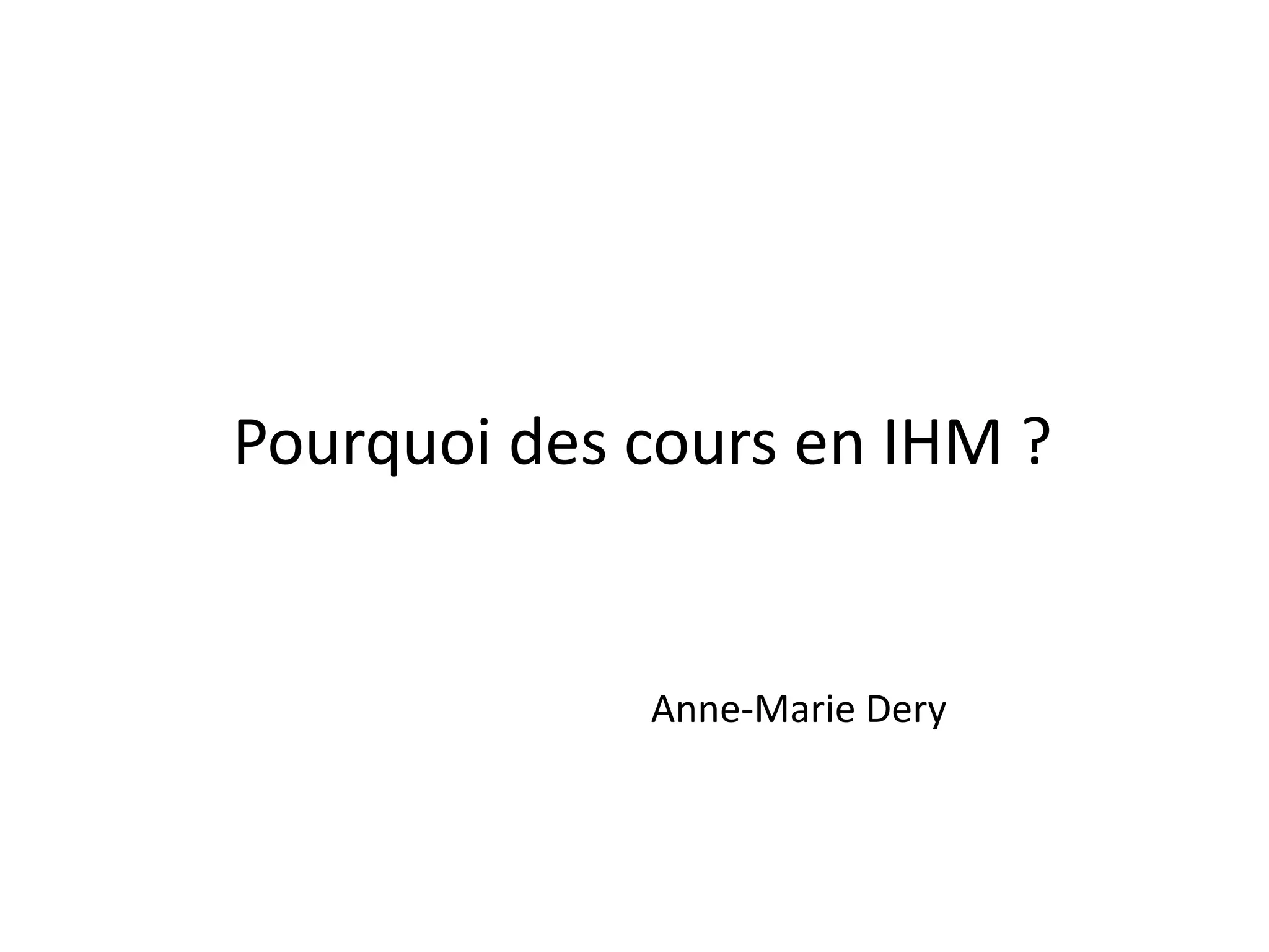 Le document traite de l'importance de l'interface homme-machine (IHM) dans le développement des logiciels, en soulignant les défis liés à la conception, l'efficacité et la satisfaction des utilisateurs. Il décrit le processus pédagogique pour enseigner l'IHM à l'aide de JavaFX et d'Android, en mettant l'accent sur la modularité, l'évaluation ergonomique et l'architecture logicielle. Enfin, il évoque l'utilisation de patrons de conception et des outils spécifiques pour optimiser le développement d'interfaces utilisateur adaptées aux différents supports.