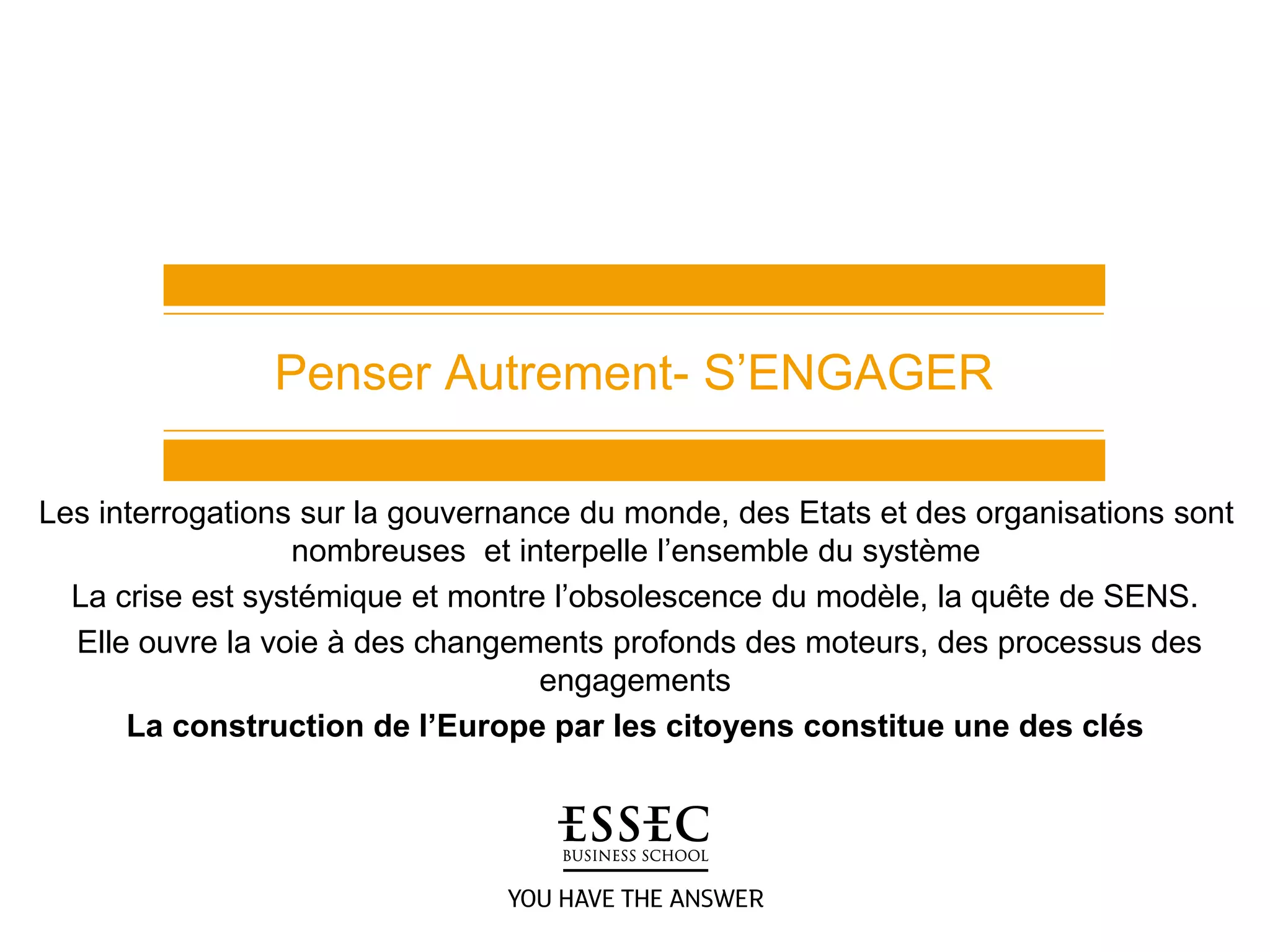 Le document aborde les enjeux de la gouvernance en Europe, soulignant la nécessité d'un engagement citoyen pour revitaliser l'idée européenne et faire face à une crise systémique. Il propose des pistes d'éducation et de communication pour renforcer le sentiment citoyen européen et améliorer la participation des citoyens dans la construction européenne. L'auteure Viviane de Beaufort met en lumière l'importance de la démocratie, des droits civiques et des acquis européens pour garantir un avenir commun et solidaire.