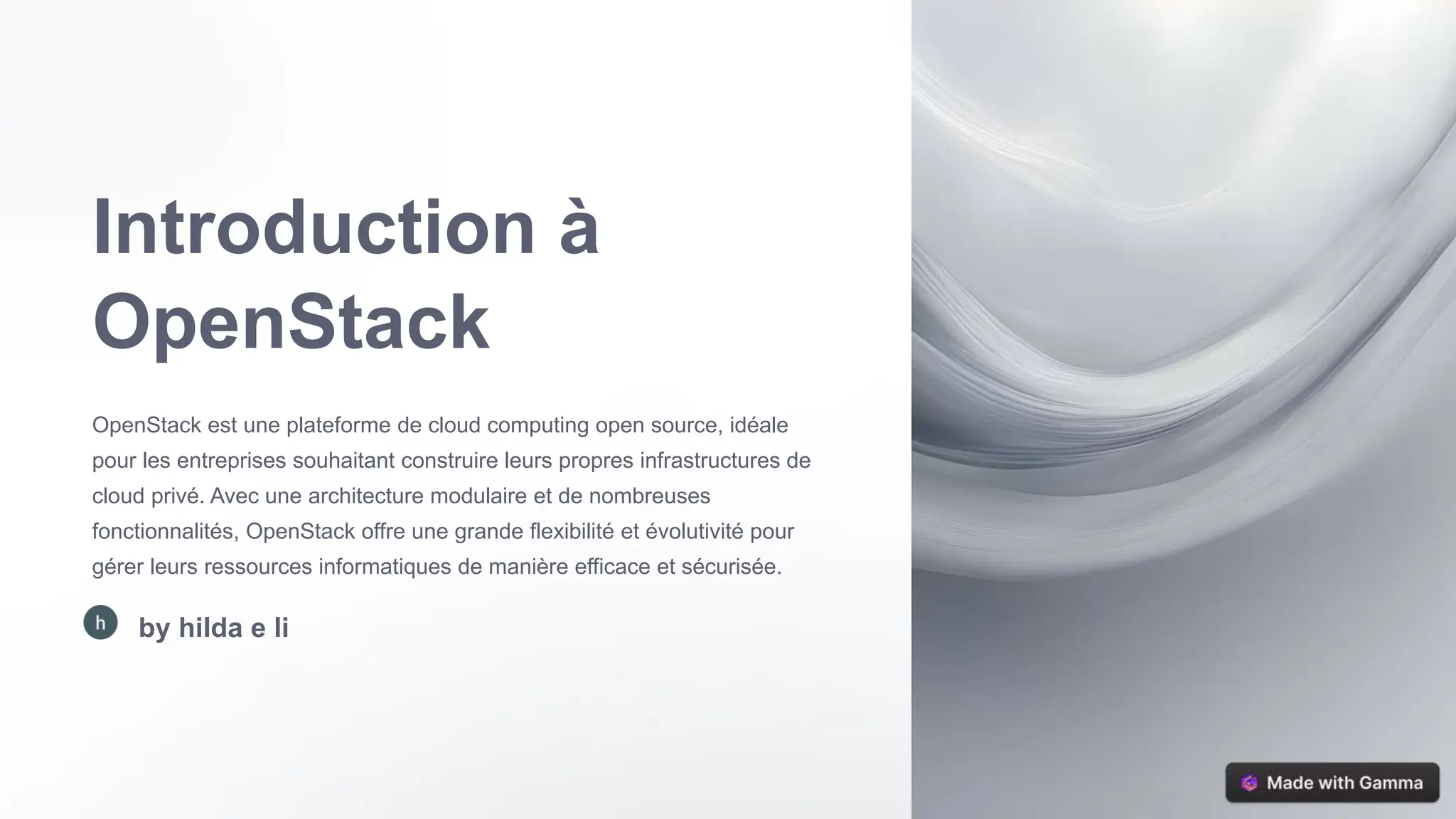 OpenStack est une plateforme de cloud computing open source qui permet de déployer des infrastructures de cloud privés, publics ou hybrides avec une architecture modulaire et évolutive. La plateforme, développée depuis 2010 par la NASA et Rackspace, a gagné en popularité et est largement adoptée pour divers cas d'utilisation tels que le calcul haute performance et la virtualisation des réseaux. OpenStack bénéficie d'une communauté dynamique qui soutient son développement continu et propose des ressources de formation pour les professionnels.