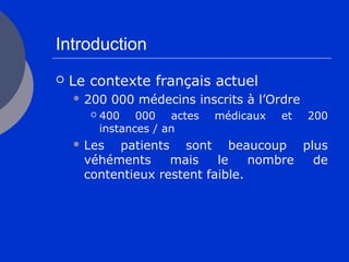 Le document traite des différentes formes de responsabilité médicale en France, y compris la responsabilité pénale, civile, administrative et disciplinaire, ainsi que la nouvelle responsabilité de solidarité nationale. Il souligne la distinction entre ces types de responsabilité, leurs implications juridiques et les procédures associées pour les victimes. En conclusion, il mentionne que plusieurs formes de responsabilité peuvent être engagées simultanément et insiste sur le fait qu'une dérive vers un système à l'américaine n'est pas envisageable en France.
