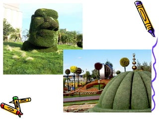 Le document présente une étude détaillée sur l'évolution des jardins à travers l'histoire, englobant leur définition, leur historique, et les différentes classifications basées sur leur tracé géométrique. Il met également en évidence les techniques de conception des jardins dans diverses cultures, notamment les jardins français, anglais, hispano-moresques, japonais et chinois. Enfin, une analyse spécifique du jardin de Villandry souligne son importance dans l'architecture des jardins de la Renaissance en France.