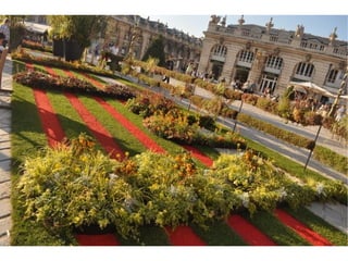 Le document présente un diaporama des jardins d'automne 2011 à la place Stanislas. Les prises de vues ont été réalisées par le site Aujourd'hui à Nancy, et les photographies en sont la propriété. Des informations supplémentaires sont disponibles sur le site mentionné.