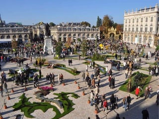 Le diaporama présente les jardins de la place Stanislas, proposé par l'association Aujourd'hui à Nancy. Il a été réalisé en octobre 2010. Le site www.aujourdhuianancy.com est mentionné comme source.