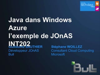 Le document présente une session sur l'intégration de Jonas, un serveur d'application Java EE open source, dans la plateforme de cloud computing Windows Azure, avec des démonstrations sur l'installation, la configuration et l'administration. Il aborde également les évolutions futures de Jonas sur Azure, les coûts de déploiement, ainsi que des recommandations sur l'utilisation de SQL Azure. Enfin, des ressources supplémentaires et des événements à venir sur le développement sous Azure sont mentionnés.