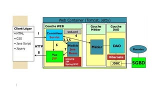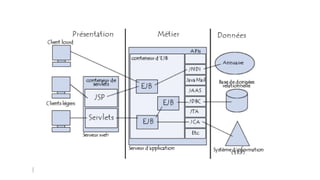 Le document traite de Java et de la plateforme Java Enterprise Edition (JEE) pour le développement d'applications d'entreprise multi-niveaux basées sur des composants. Il couvre les différentes architectures applicatives, les concepts fondamentaux sur le protocole HTTP, et la manière dont Java facilite la portabilité et la sécurité des applications. Enfin, il aborde les frameworks modernes qui améliorent l'industrialisation du développement logiciel et les méthodologies agiles.