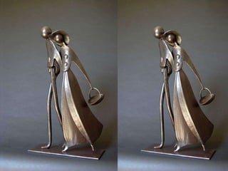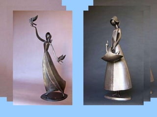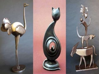 Jean-Pierre Augier, sculpteur originaire du pays niçois, crée des œuvres en fer inspirées par des objets récupérés, transformant des matériaux de rebut en sculptures représentant des personnages et des animaux. Son travail, effectué dans un atelier situé dans une ancienne écurie, reflète son amour et sa passion pour l'art, tout en démontrant ses compétences techniques autodidactes. Les sculptures illustrent la beauté des gestes quotidiens et l'esthétique des formes simples, témoignant de l'harmonie entre l'art et la vie moderne.