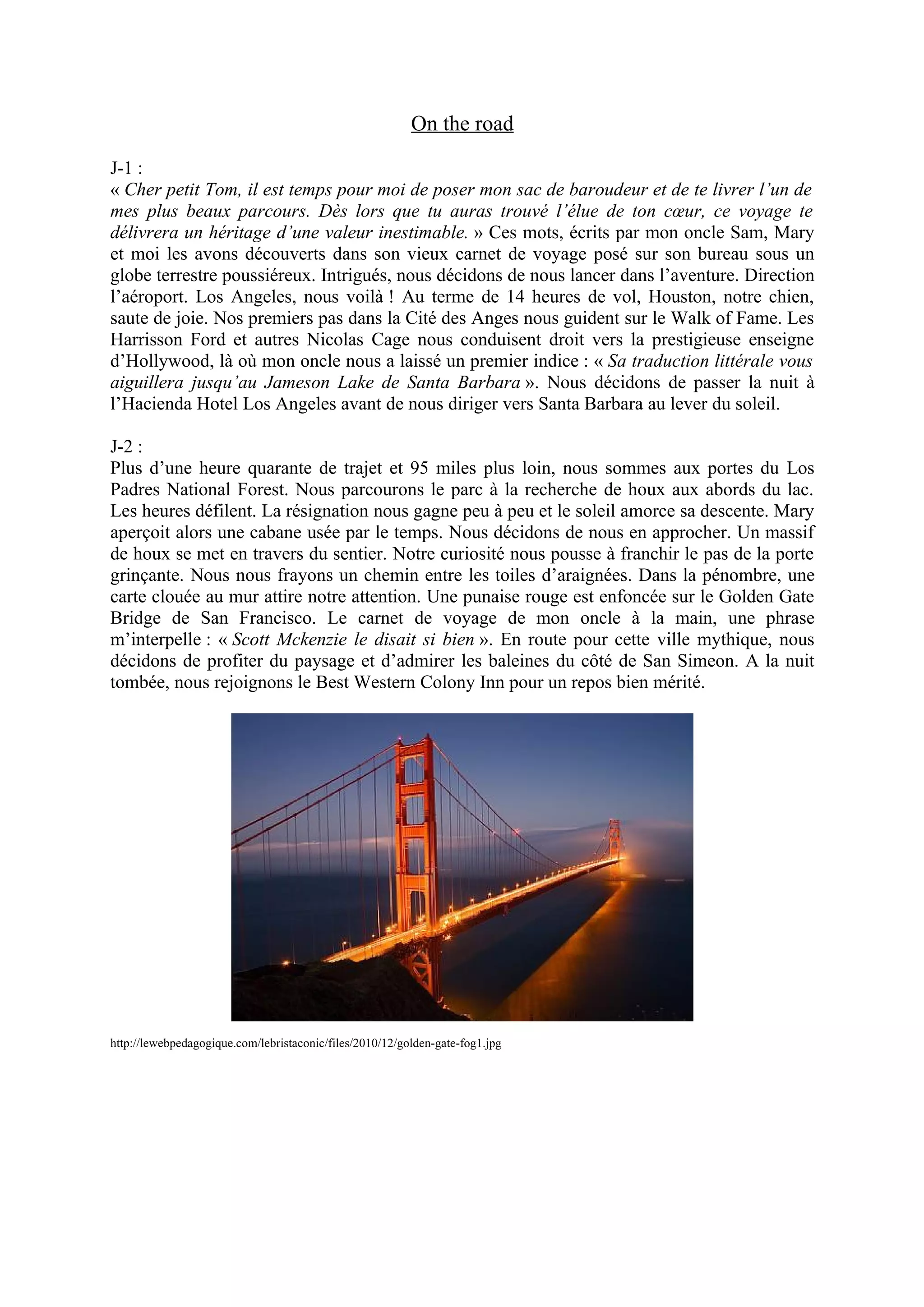 Le récit raconte un voyage d'aventure à travers Californie, inspiré par le carnet de voyage d'un oncle décédé. Les protagonistes, kinés sous le poids des souvenirs, découvrent des paysages magnifiques et des indices historiques tout en forgeant leur propre histoire d'amour. Le voyage culmine avec un mariage à Las Vegas et se termine par un hommage touchant à l'oncle.