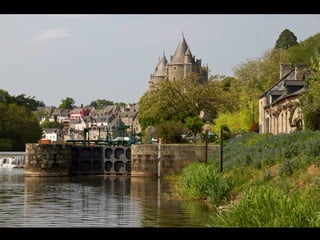 Josselin est une commune bretonne fondée au 11ème siècle, célèbre pour sa basilique Notre-Dame-du-Roncier et son château des ducs de Rohan. La ville possède un riche patrimoine médiéval avec des maisons à colombages et plusieurs bâtiments classés monuments historiques. Aujourd'hui, le château abrite un musée de la poupée et reste un site touristique majeur.