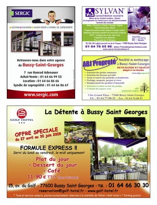 Le magazine municipal de Bussy-Saint-Georges de mai 2009 traite de plusieurs événements récents, notamment la fête patronale de la Saint-Georges, les commémorations du devoir de mémoire, et les projets d’embellissement de la ville en période de crise économique. Il aborde également des initiatives éducatives comme la réalisation d'un cahier de vacances inspiré du Petit Nicolas et la célébration du Nouvel An cambodgien. Le maire, Hugues Rondeau, souligne l'importance de l'attractivité économique et de la solidarité durant ces temps difficiles.