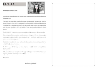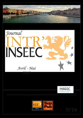 Le numéro d'avril-mai 2013 du journal intr’inseec présente les articles des étudiants de 2ème année, évoquant les événements de l'école, des interviews et des nouvelles concernant diverses initiatives. Le journal souligne l'importance de la participation des étudiants et encourage l'interaction avec la nouvelle équipe. Il comprend également des articles sur des thématiques variées, comme les jours fériés en mai et une découverte musicale sur Kacem Wapalec.