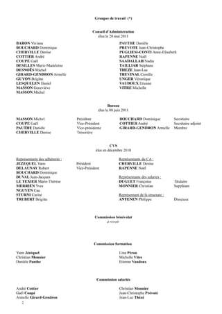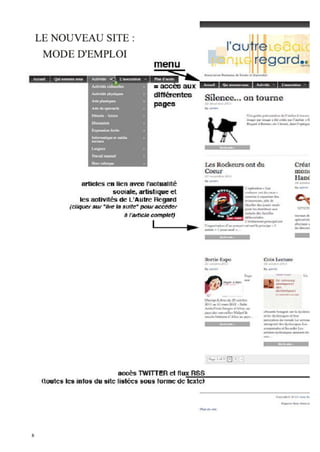 Le document présente un journal associatif qui informe ses adhérents sur les activités, les vœux pour 2012, et les résultats d'une enquête de satisfaction. Cette enquête révèle une majorité de membres satisfaits des activités et du fonctionnement de l'association, ainsi que des possibilités de bénévolat et de formations. Des propositions d'activités sont également annoncées, notamment des sorties et des projections de films.