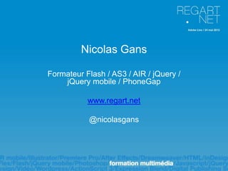 Le document présente l'utilisation de jQuery Mobile et PhoneGap pour créer des applications web dynamiques côté client sans PHP, ainsi que les meilleures pratiques à adopter. Il aborde des concepts clés comme le chargement de contenu JSON, la génération de pages HTML, et les différences entre applications web et natives. Enfin, il souligne l'importance de la gestion des événements et des méthodes de rafraîchissement pour styliser le contenu injecté dans une application mobile.